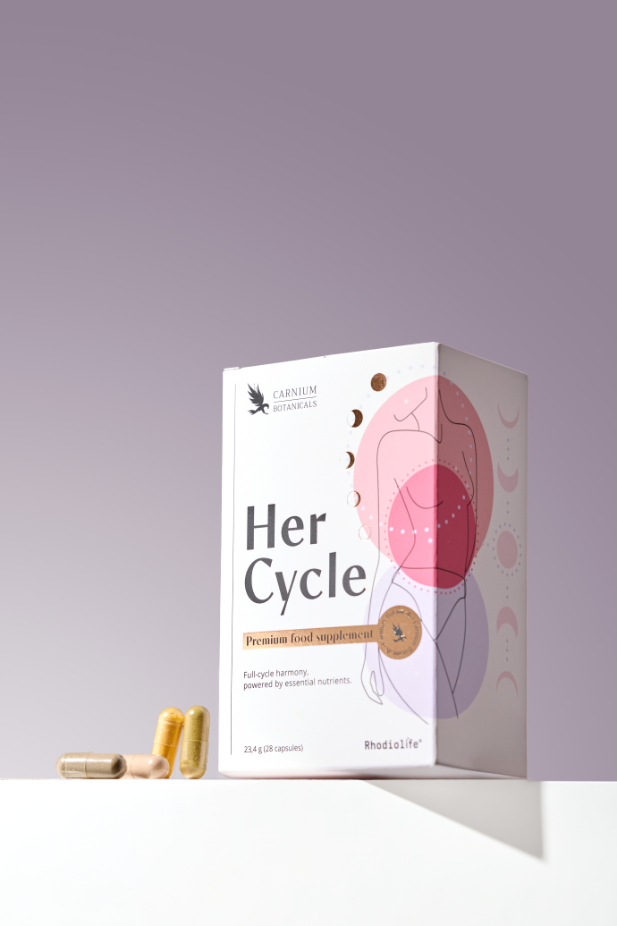Her Cycle združuje močne naravne sestavine, ki zagotavljajo ciljno podporo tvojemu telesu skozi celoten mesec: