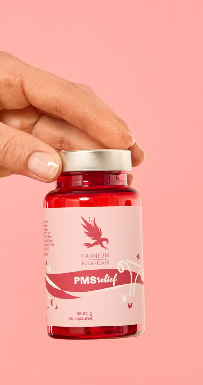 PMS Relief je prehransko dopolnilo s skrbno izbranimi sestavinami, ki podpirajo žensko telo v času pred menstruacijo. Ingver lahko pomaga pri obvladovanju vnetnih odzivov in spodbujati normalno ravnovesje vnetnih hormonov, kar je pomembno v obdobju pred menstruacijo. Magnezij prispeva k zmanjševanju utrujenosti in izčrpanosti, ravnotežju elektrolitov ter sproščanju energije pri presnovi . Prav tako ima pomembno vlogo pri delovanju živčnega sistema in mišic , prispeva k normalnemu psihološkemu delovanju ter ima vlogo pri sintezi beljakovin. Kitajska angelika podpira zdravje ženskega urogenitalnega sistema, kar prispeva k splošnemu dobremu počutju. Cink ima vlogo pri plodnosti in prispeva k ohranjanju zdrave kože, las in nohtov , kar je pomembno v obdobju hormonskih nihanj. Vitamin B6 prispeva k uravnavanju hormonske aktivnosti, zmanjšanju utrujenosti in izčrpanosti ter podpira normalno delovanje živčnega sistema. Vitamin D3 prispeva k delovanju mišic ter ohranjanju zdravih kosti, ki lahko vplivajo na splošno fizično počutje. Bioperine® črni poper pomaga ohranjati naravne prebavne funkcije . Z redno uporabo PMS Relief telesu zagotavlja izboljšati kakovost življenja in ohraniti več energije ter notranjega ravnovesja v času hormonskih sprememb.