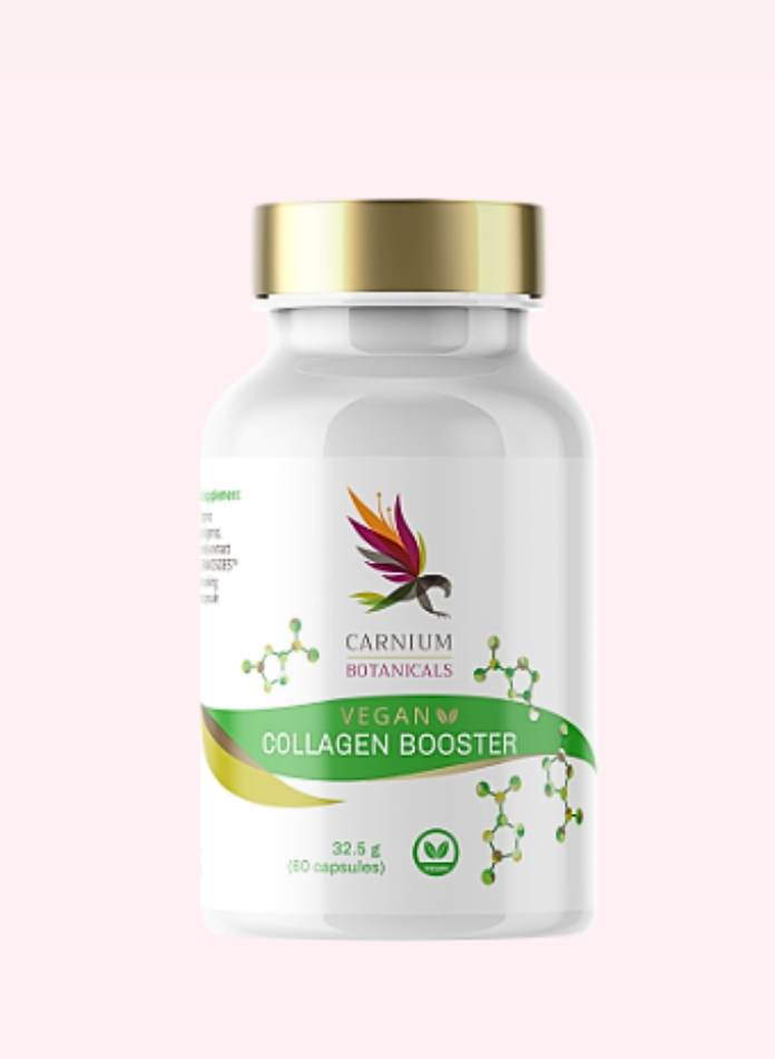 Vegan Collagen Booster je prehransko dopolnilo, zasnovano za vse, ki si želijo naravno podpreti tvorbo kolagena brez uporabe živalskih sestavin. Njegova napredna formula vključuje izvleček navadnega bambusa, ki je bogat z naravnim silicijevim dioksidom, ključnim za elastičnost kože in moč nohtov. Mešanica aminokislin (prolin, lizin, glicin) zagotavlja ključne gradnike za sintezo kolagena, medtem ko izvleček zelenega čaja in šipek z naravnim vitaminom C delujeta kot antioksidanta, ki ščitita celice pred oksidativnim stresom. Dodatek Ceramosides™, bogat z glikozilceramidi, zagotavlja globinsko hidracijo kože, zmanjšuje njeno suhost in podpira naravno funkcijo kožne bariere. Redna uporaba Vegan Collagen Booster pomaga ohranjati zdravje kože, las in nohtov ter zagotavlja bolj sijočo, mladostno polt.